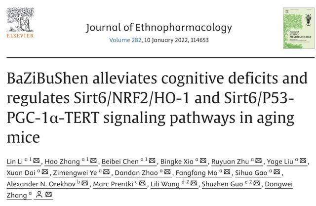 [1] Lin Li, Hao Zhang, Beibei Chen, et al, BaZiBuShen alleviates cognitive deficits and regulates Sirt6/NRF2/HO-1 and Sirt6/P53-PGC-1α-TERT signaling pathways in aging mice, Journal of Ethnopharmacology, Volume 282, 2022.