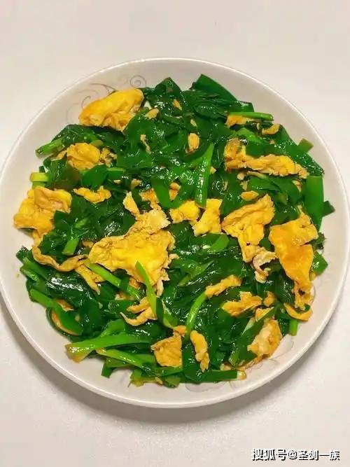 4.另起油锅,油温6成热,放入韭菜翻炒30秒钟之后,加入盐,白糖,料酒,继续翻炒一分钟,把鸡蛋放入搅拌均匀即可出锅装盘。