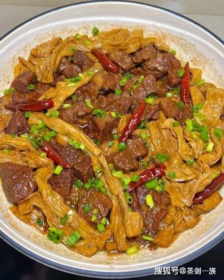 4、倒入开水,大火烧开后,转小火慢炖50分钟。加入泡好的腐竹,继续炖煮10分钟。大火收汁即可。