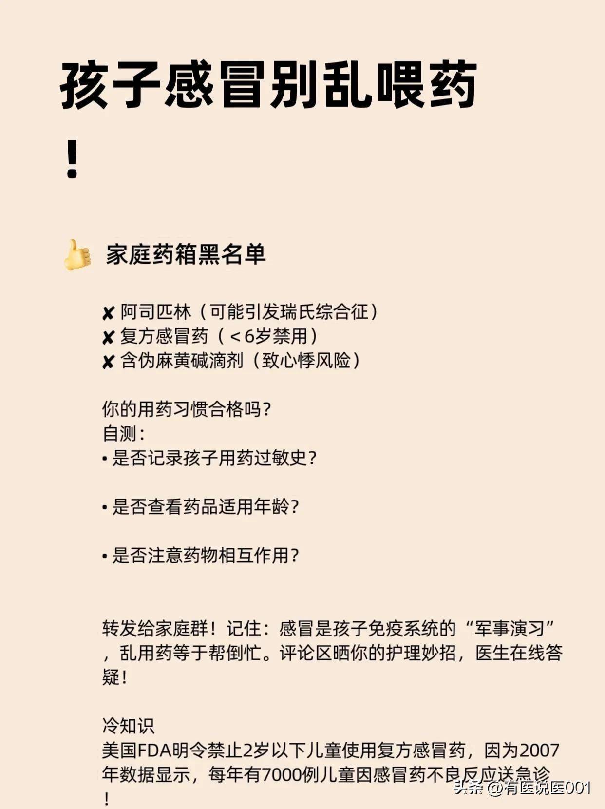 此外,阿司匹林、复方感冒药等已被列入儿童用药黑名单。转发给家人,守护孩子健康!