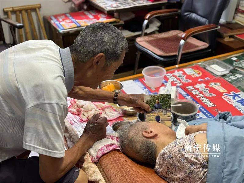 为了让老伴血脉通畅、血压正常,喂药打针之余,杜雨亭还自学了用调羹来刮痧,每天用调羹刮一次,确保疗效到位。如今,这对夫妻早已过了64年的金婚。杜雨亭曾对老伴承诺——“尽管放心,一切有我,吃喝拉撒这些我全都会服侍好你”。多年下来,诺言践行如一,老伴姚雪芬康复得不错,长了十斤肉,而老杜却瘦了十斤,但他觉得一切都是值得的。