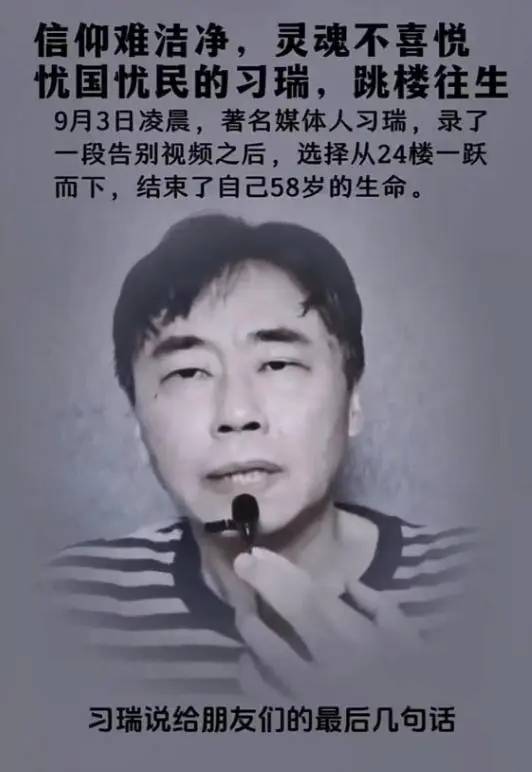 然而,这种看法并不适用于每个人。最近,一则新闻引起了公众的广泛关注:2023年9月3日,知名媒体人习瑞在58岁时选择跳楼自杀。这一消息引发了大量讨论与猜测。有些人认为他因为经济压力过大,才走上绝路;也有些人说他早就患有抑郁症,生活中的种种不如意让他最终做出了这个决定。