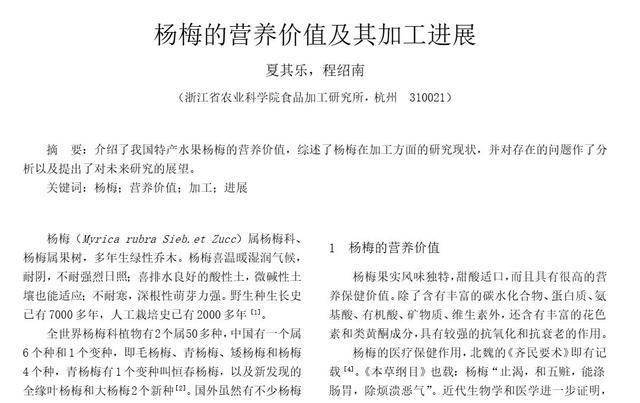 [1]夏其乐,程绍南.杨梅的营养价值及其加工进展[J].中国食物与营养,2005,(06):21-22.