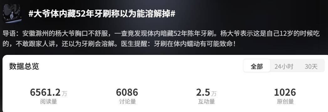 经多学科会诊,医生决定采用内镜微创,历时80分钟,成功将牙刷完整取出。术后,杨大爷恢复良好已出院。