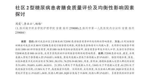 [1]周霞,李亚云,杨梅.社区2型糖尿病患者膳食质量评价及均衡性影响因素探讨[J].广州医科大学学报,2023,51(04):56-60.