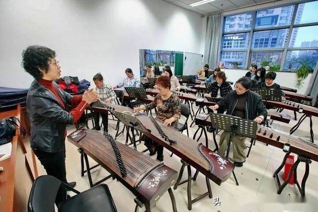 学员在市群艺馆夜校老师的指导下学习古筝。记者 李铎 摄