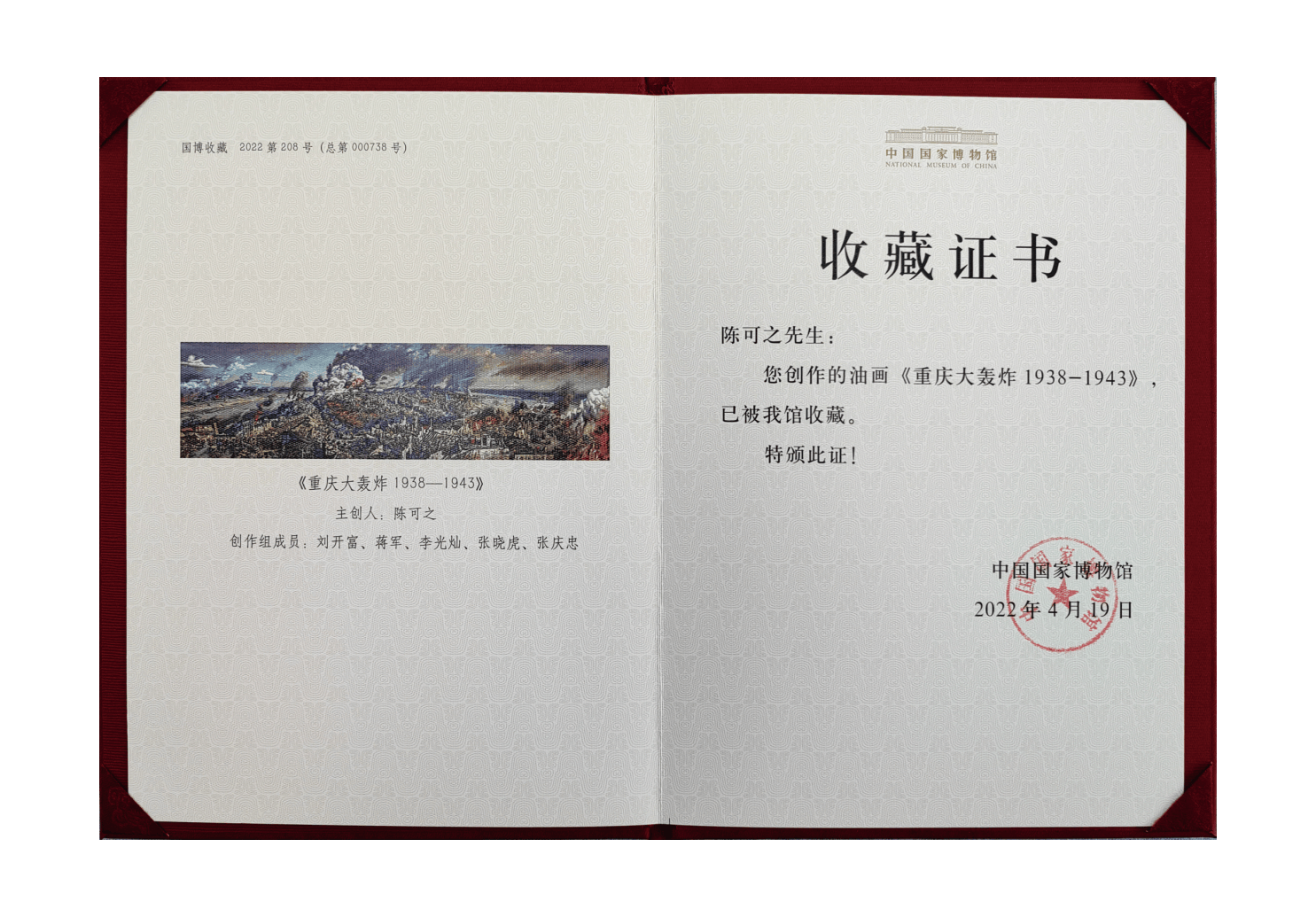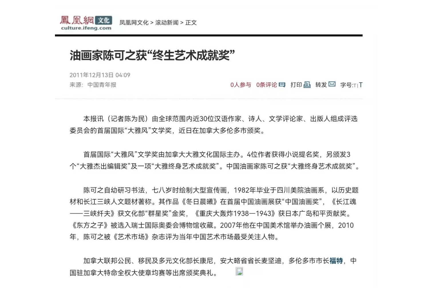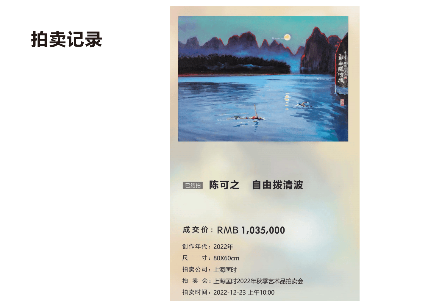 陈可之作品由中国国家博物馆、人民大会堂、中国美术馆、 中国人民抗日战争纪念馆、瑞士奥林匹克博物馆、美国林肯艺术 中心等中外美术馆博物馆及私人收藏,并在世界各地举办巡回展 览或联展,出版中国高等院校美术油画教学范本等数十种著作。