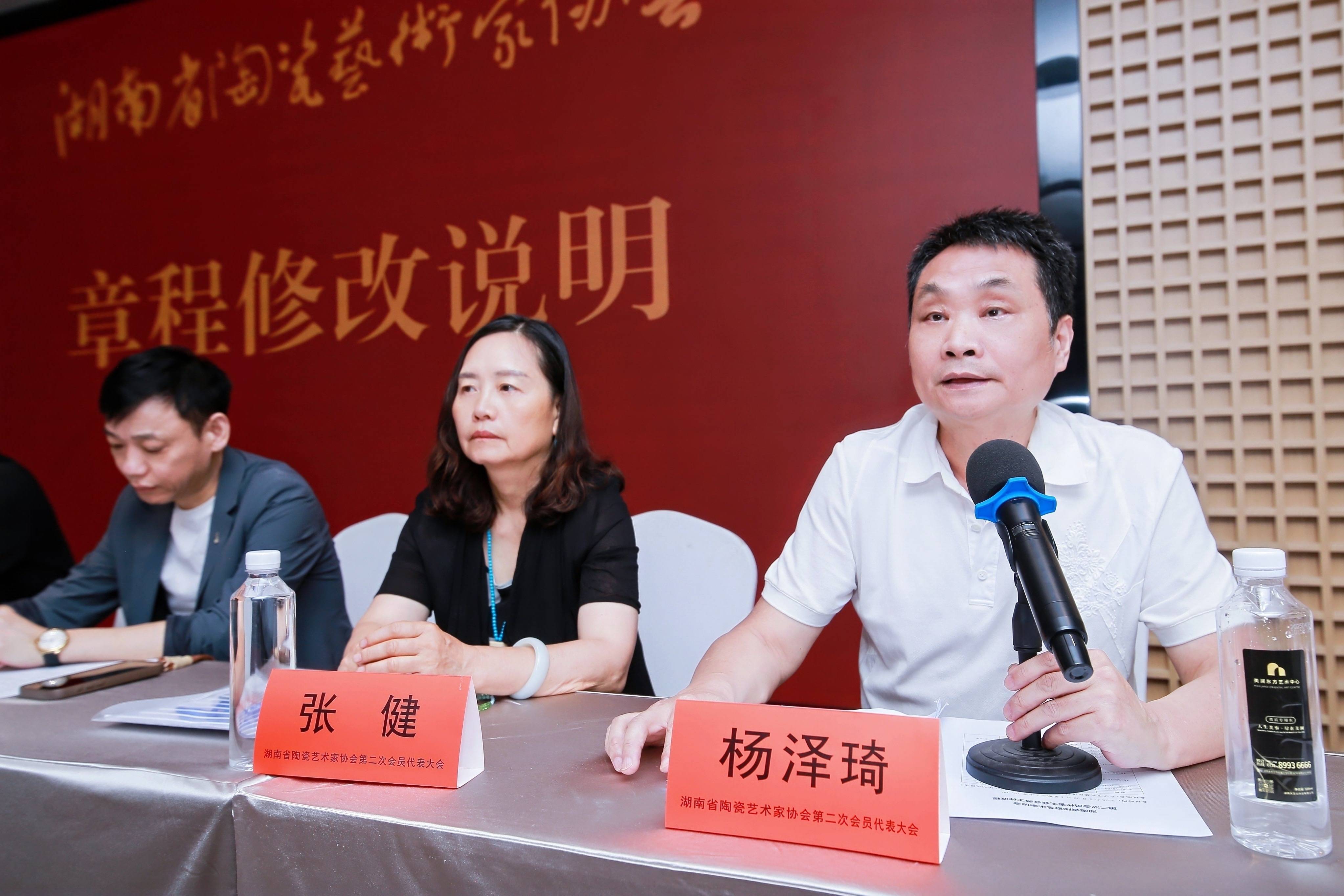 湖南省陶瓷艺术家协会成立于2017年,8年来立足我省陶瓷艺术事业,在创作队伍、艺术作品等方面取得不俗成绩。为迎接更大发展,本次大会选举产生了湖南省陶瓷艺术家协会第二届常务理事会、理事会、监事会和第二届主席团。陶润文当选为协会主席,童治军当选为常务副主席兼秘书长,彭利民、谭演湘、杨泽琦、张健、欧亮、易凭当选为副主席、张珺鸾当选为监事长、周诗睿、范等笔当选为监事、刘志鹏被聘为协会名誉主席。