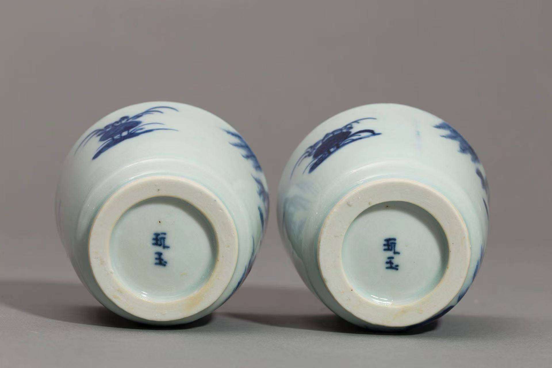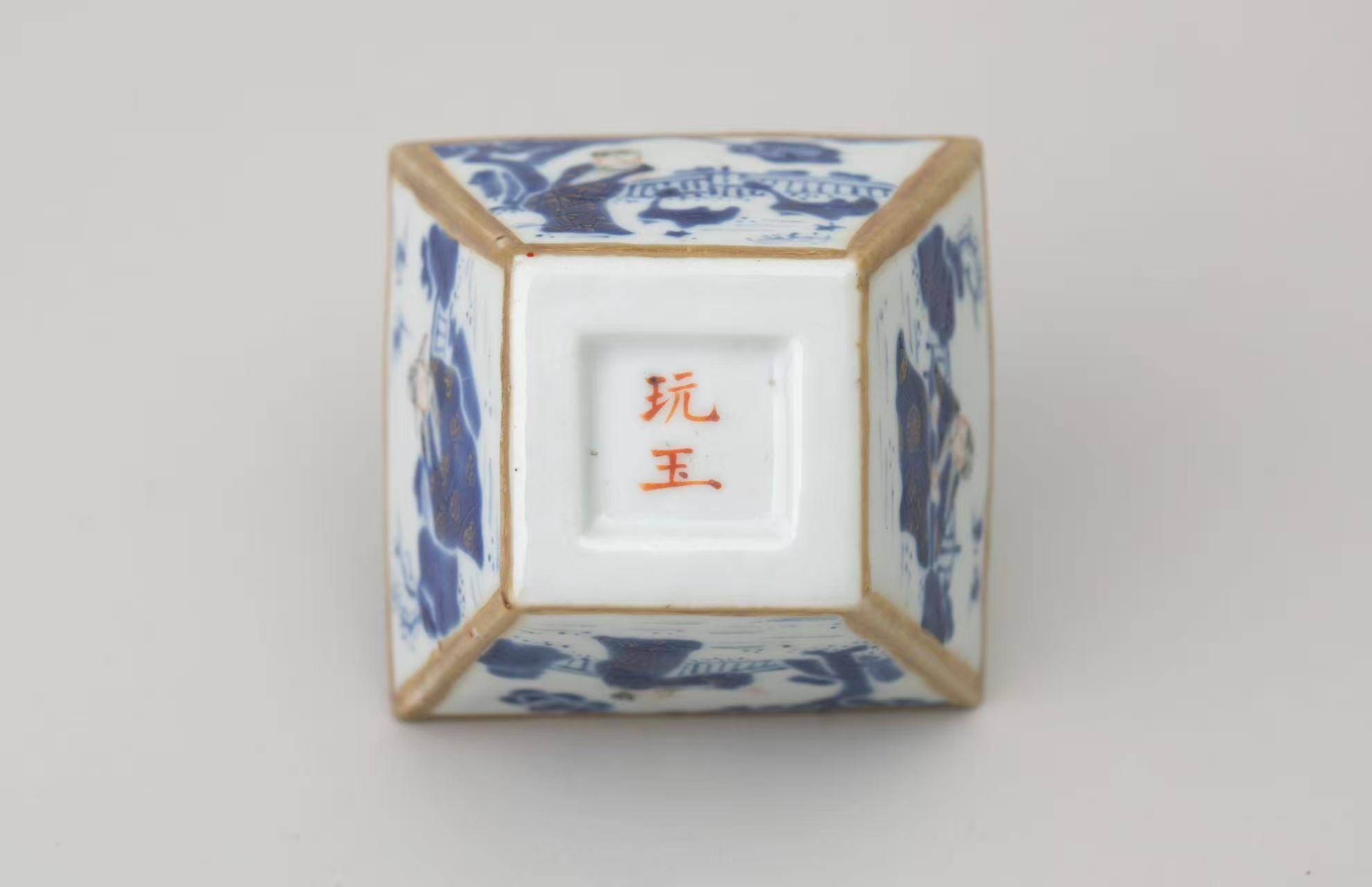 玩玉款瓷器,在收藏界和瓷器研究领域占据着独特的地位,承载着丰富的历史文化内涵。它主要流行于康熙时期,彼时社会稳定、经济繁荣,瓷器制造业也迎来了发展的黄金期。康熙 “玩玉” 款瓷器最初是达官贵人的清玩,以压手杯居多,部分瓷器还提有诗文 ,其瓷胎细腻,画工娴熟,青花发色淡雅,可与官窑媲美,堪称堂名款中的精品,也可说是民窑精品。比如康熙时期的玩玉款青花山水纹压手杯,其瓷胎轻薄坚致,迎光透视,胎体呈肉红色,展现出极高的制瓷工艺水准。