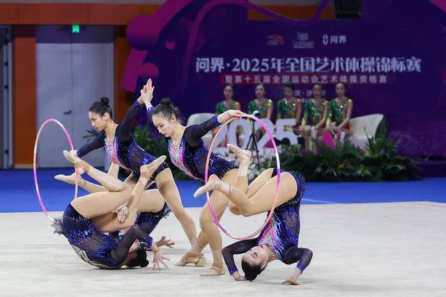 当日,在重庆市沙坪坝区举行的2025年全国艺术体操锦标赛暨第十五届全国运动会艺术体操资格赛成年集体全能(5带、3球2圈)决赛中,上海队获得冠军。