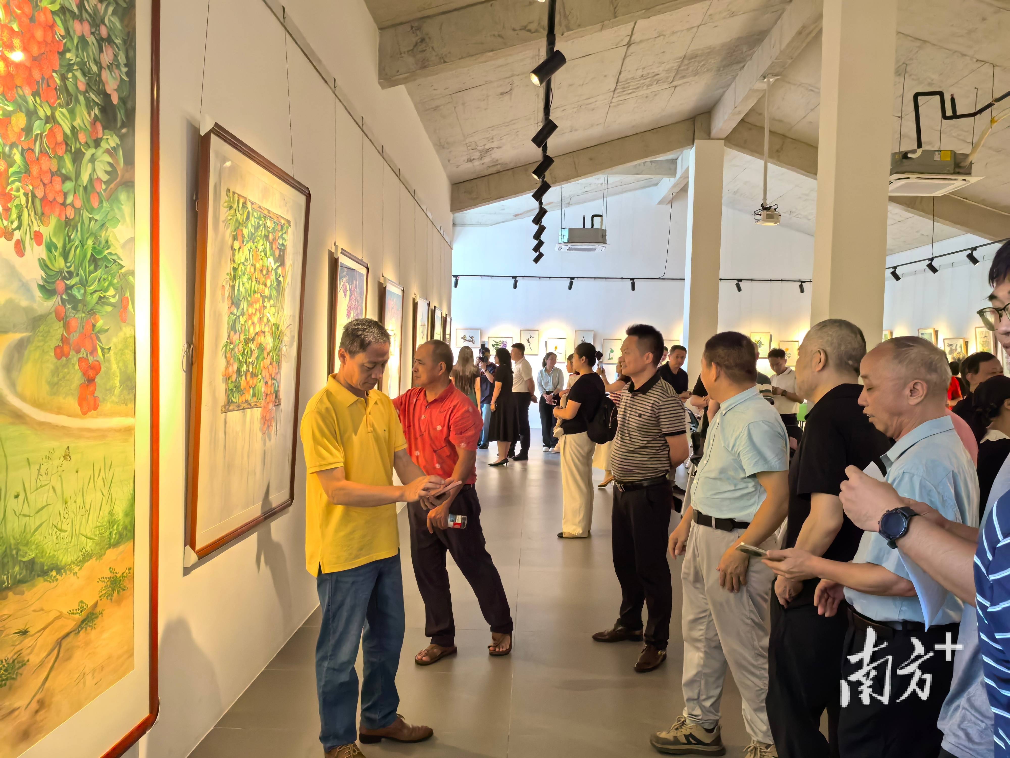 本次展览持续至7月10日,展出本土青年画家青杏子以写实手法创作的《观音绿》等荔枝主题画作,以写实手法再现荔果丰收的喜人景象,而麒麟、青山绿水等元素则巧妙融入樟木头本土文化,形成独具特色的艺术表达。